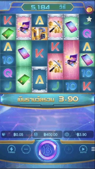 - เมื่อเล่นได้ สัญลักษณ์ CPU ขุดบิทคอย จำนวน 3-6 สัญลักษณ์ จะได้รับรางวัลสูงสุด 50x